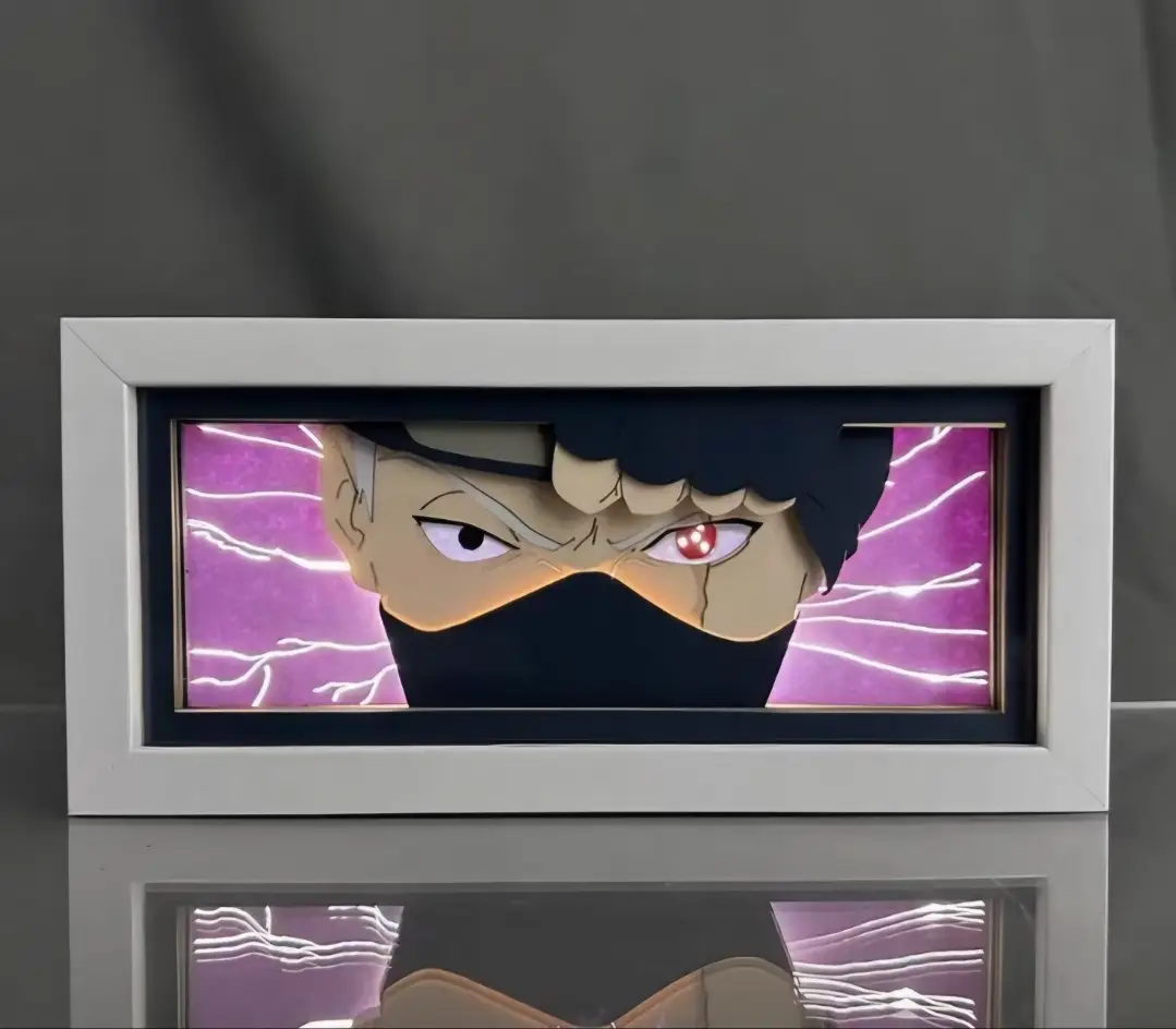 Le célèbre ninja copieur prend vie dans ce cadre LED stylé, avec son Sharingan et son aura mystérieuse.